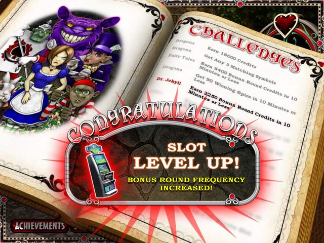 Embark on an amazing adventure through a fascinating story book in Slot Quest: Alice in Wonderland. The task at hand asks you to restore four famous stories that are being maliciously rewritten by four evil characters. Defeat the evil villains, including the Queen of Hearts, Wicked Witch, Mr. Hyde, and the Evil Dragon. Unlock new slots as you progress through each storybook. Complete quests, earn Achievements, and win!